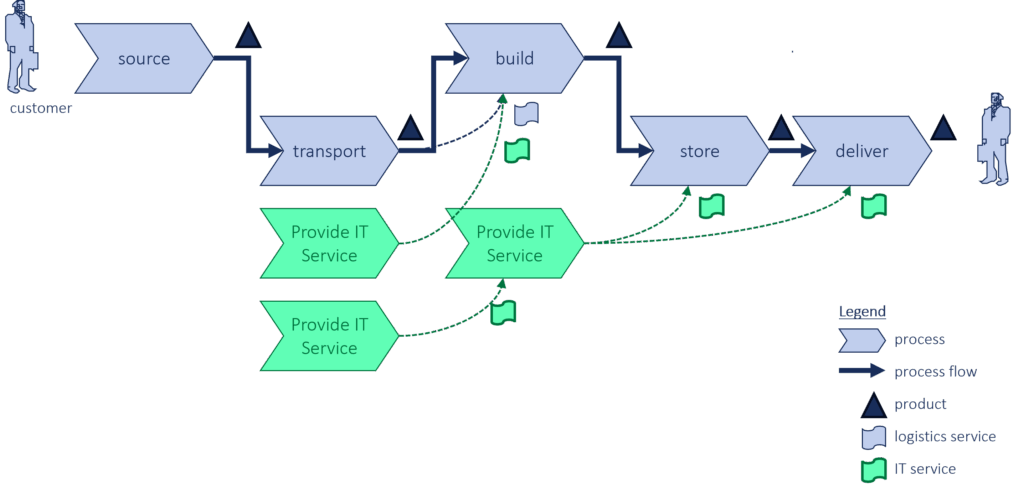 A logistics service provider offers logistics services to. An IT service provider offers services related to information technology, e. g. the hosting and operation of a transport control application.