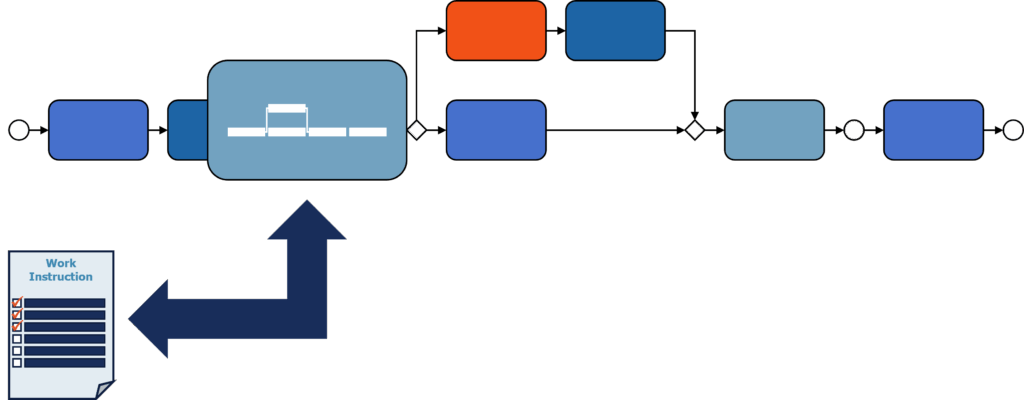A work instruction describes how an activity is performed. A work instruction can encompass a sequence flow of the tasks to be executed or any technical information required for understanding.