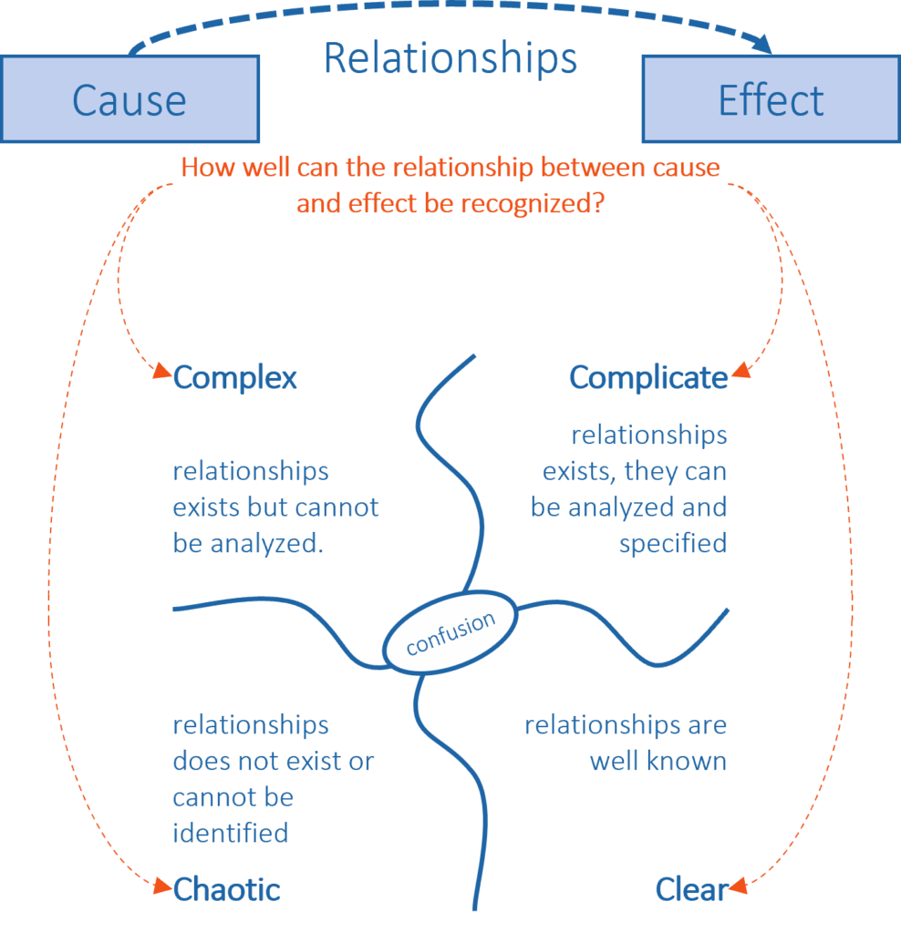 Relations between cause and effect can only deducted retrospect, “right” answers are not available.