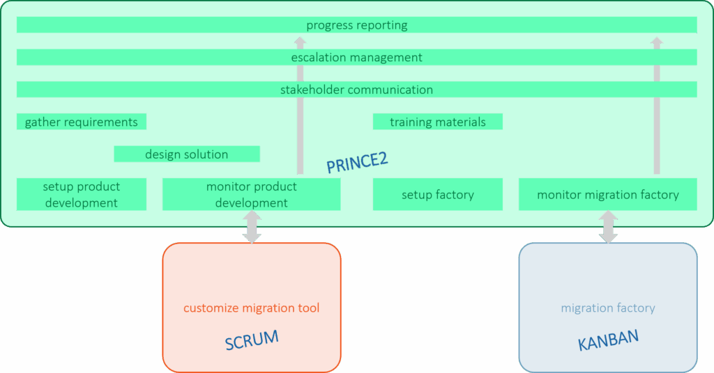 You can apply a hybrid approach gives you control and efficiency. Treat the overall mailbox migration as a project but design setup a “migration factory” using operations management principles. Design and manage the actual mailbox migration process.